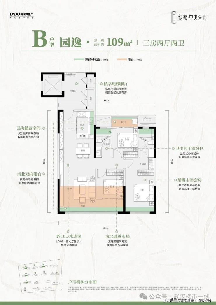 建面约109平三房,为单元拼接边户。小面积边户,南北双阳台,而且,北向阳台并不是家政阳台,堪称惊艳。这样的设计目前市面上很难见到。