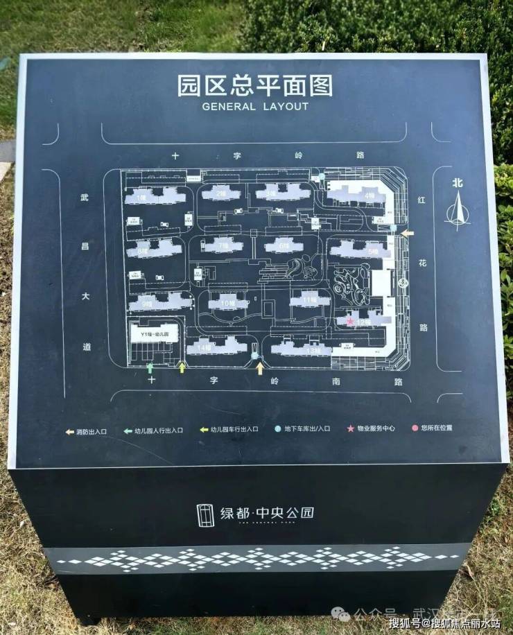 小区导示做得比较细致,清晰地标示了各个地库入口、小区内步行道路和儿童区等景观区域。