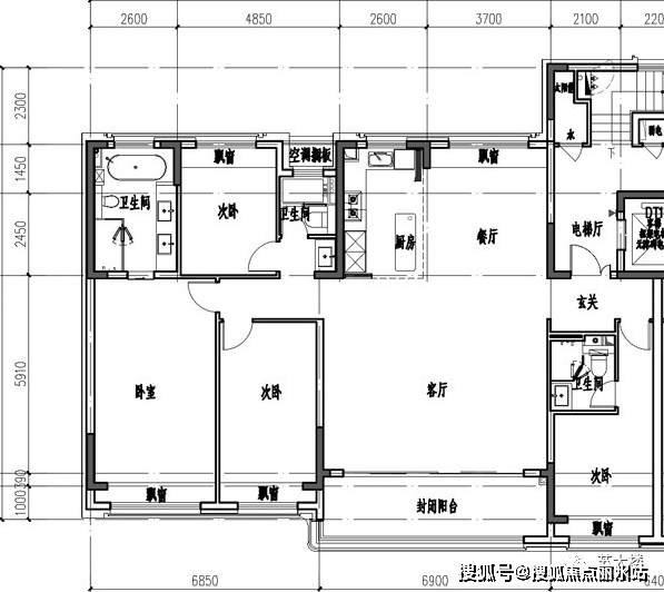 建面约228㎡洋房做到双套房、绅士&女王双衣帽间、双玄关、主卧双开门、中西双厨五双户型,且双套房布局做到全明三卫;