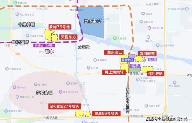 占位金鸡湖黄金四角之东南角,约1.5公里金鸡湖。项目双轨交汇,步行可达斜塘老街,紧邻苏州奥体中心。