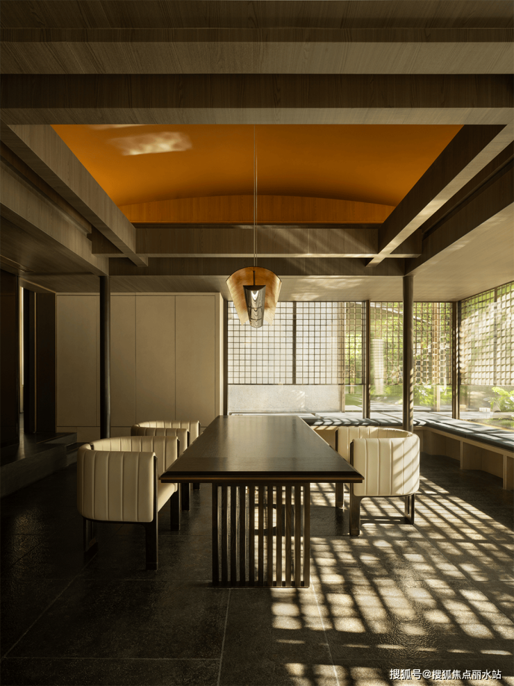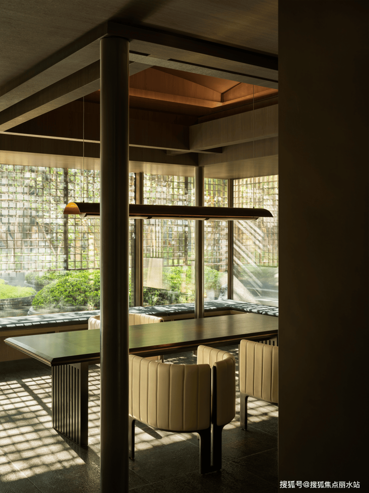 室内设计以山市的青翠山峦为背景,描绘出一片清新、朦胧的景象,仿佛云雾缭绕,营造出一种安宁与妥帖的氛围。“留白之处消融了界限,放松之中蕴含着自在。”在谦逊退让与克制张扬之间,建筑巧妙地融合了历史的传承、未来的展望与自然的连续,营造出一种尘世静谧、禅意流淌的环境。光与影悄然交织,无声地勾勒出建筑的轮廓。空间自有其精神内涵。当人们不再过分刻意追求,减少人为干预,而是用心去感受,将情感融入其中,空间的精神便自然显现。