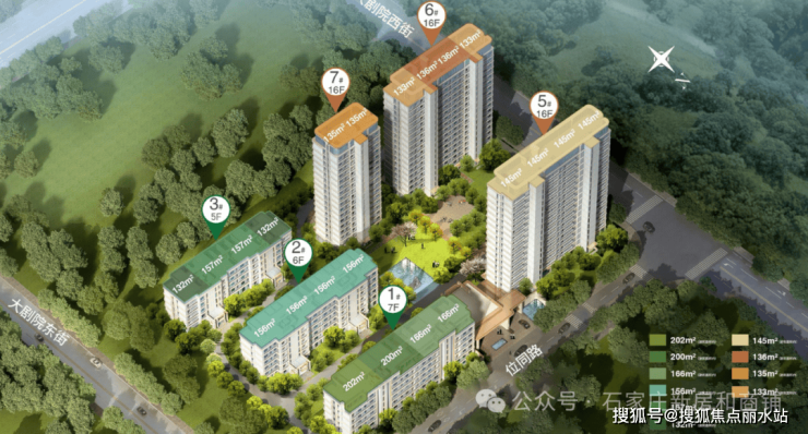 3.建筑形态 :3栋小高(16F),3栋洋房(5-7F)