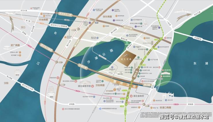 三轴鼎立 共襄内环一条中北路,精粹武汉心。约3km内汇聚武汉超半数省级以上金融机构,约2km内100余家省级行政单位、省属国企办公总部汇聚,约1.5km中央文化区(楚河汉街+SKP)。华中金融主轴、武昌政务主轴、中央商业主轴三大主轴鼎立,一城高阶资源精粹于此,共襄武汉内环上的城市封面。