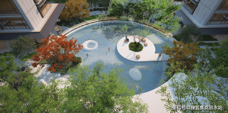 南京首个悬浮戏水池,遵循“天圆地方,树宅相守”的传统哲思,打造“大树之下,古树悬水”的精神地标。