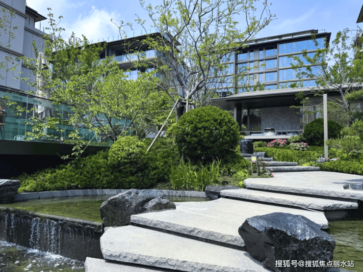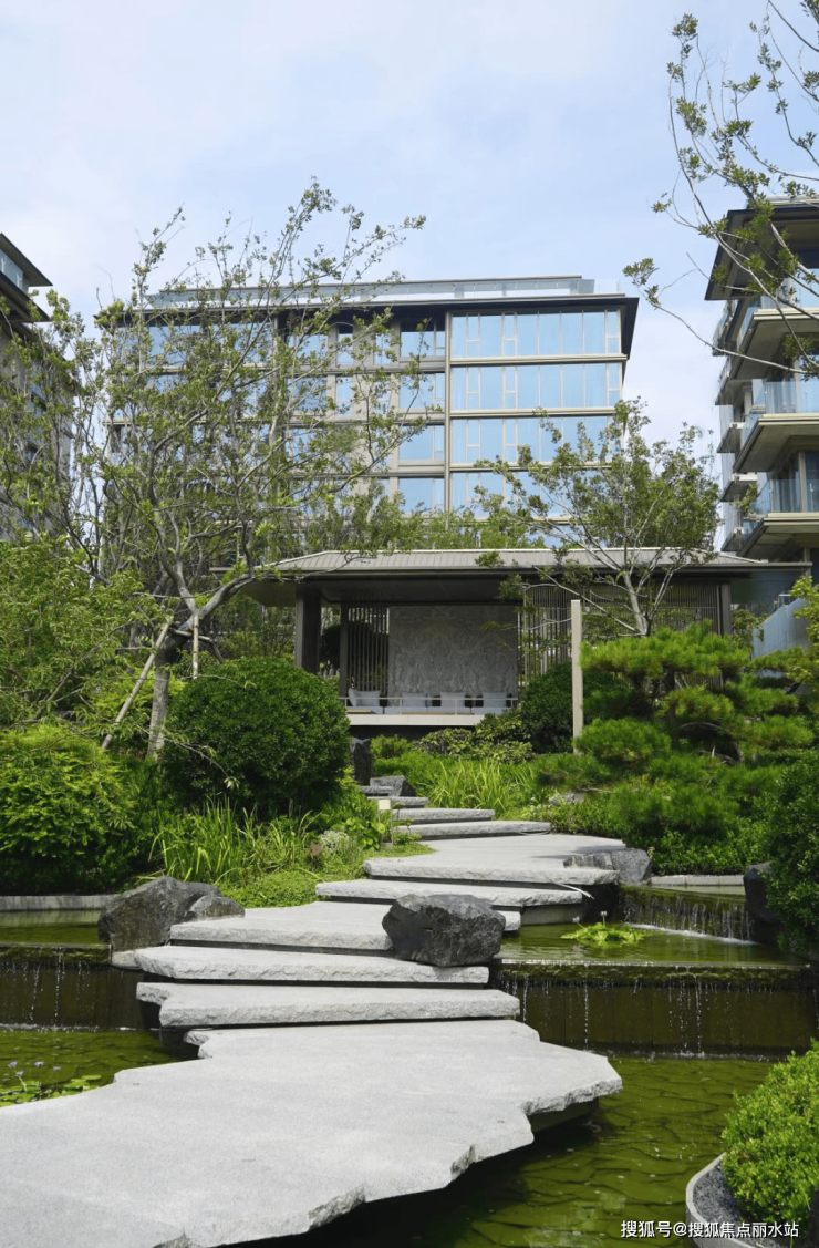 西海云庐的园林设计深刻体现了“虽由人作,宛自天开”的东方造园理念,打造了约6300㎡的台地式山水园林,通过“叠山、理水、游园、抱树”的造园技法,勾勒出一幅立体山水画卷。得益于台地高差优势,洋房最大限度地利用了自然环境资源,将整个园区的景致完美纳入生活动线。