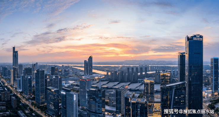 北侧,双子塔高耸入云,保利大剧院风姿绰约,金融城、IFC、新地中心、金奥费尔蒙、国际博览中心等地标林立,江苏大剧院与奥体中心也能清晰可见。