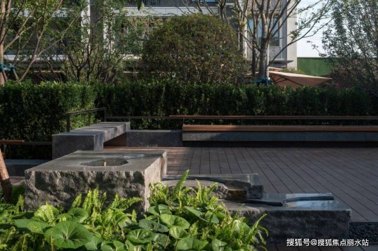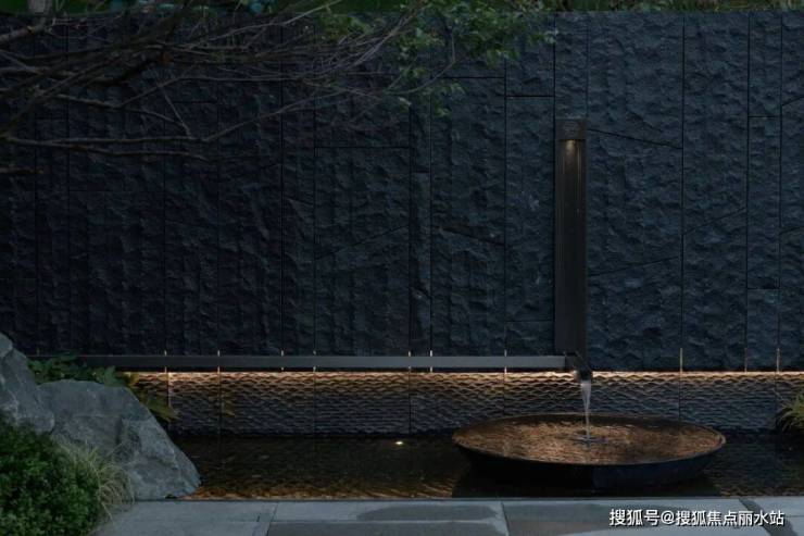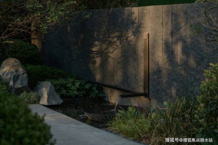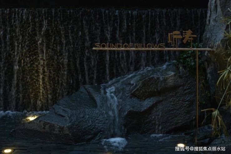 核心区从东方美学的居住本源出发,“居山可拟”,搬山水进园,小中见大,踏入山地,贴近自然,涓涓细流穿梭于乔木草甸生长的绵密触感之间形成沉浸山居岁月的游赏志趣。用纯净的空间与流动的时间慢慢沉淀对话环境的秉性。涌泉潺潺,定格心灵的宁静。硬朗的石与柔美的水,跟随行走的步伐,透过空间的开合,视野的转折,将林间自然气息渗透其中。