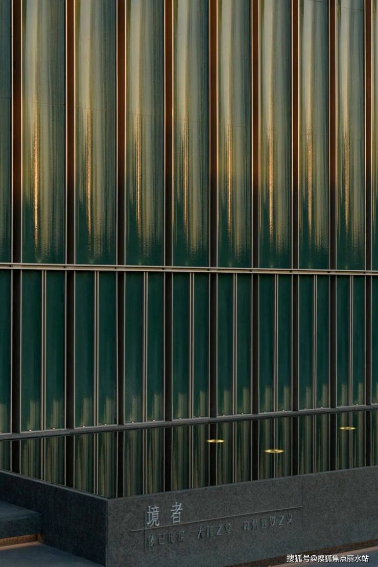 创新来自对材料的运用,项目毗邻海湾,受大海的蓝和项目案名的云境启发,选择了蓝绿色陶板作为立面材料,质感古朴典雅,金属线条勾勒出序列编织感,让古朴的材料焕发新的生命。因为是曲面,不同光影下体现出不同层次的质感,为景观增添了识别性和记忆点。