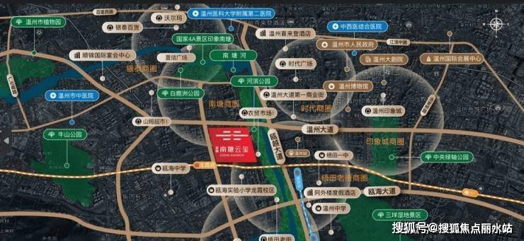 毋庸置疑,本项目所在的南塘南板块,是温州向南发展的第一站。如图,南塘南板块位于温州城区的正中央位置,板块价值不言而喻。