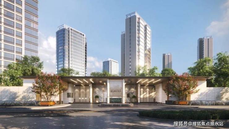 约100m超长门厅,对标一流豪华酒店,设置了无风雨迎宾前台和一体化停车接洽区,景墙均采用大面积的天然奢石打造,联动周边市政道路,点缀水景和暖灯,极具昭示性。