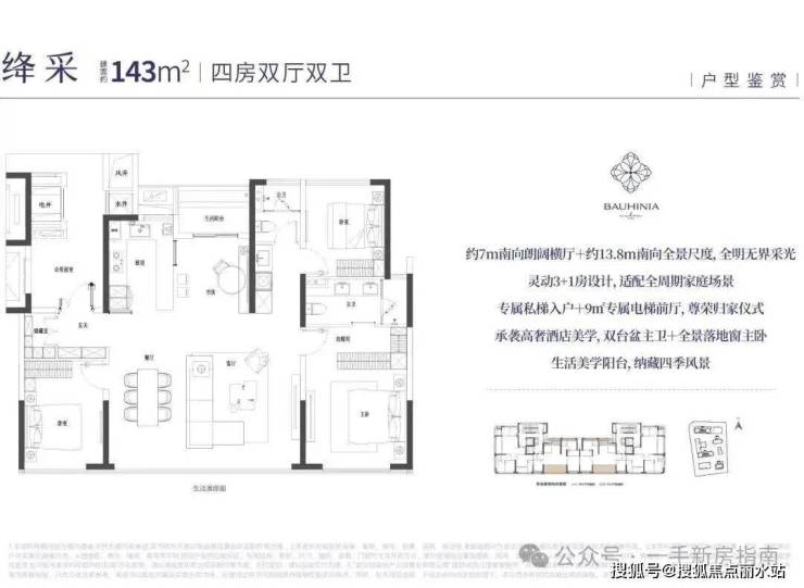 目前,招商紫荆府即将首开1号楼建面约143平精装四房