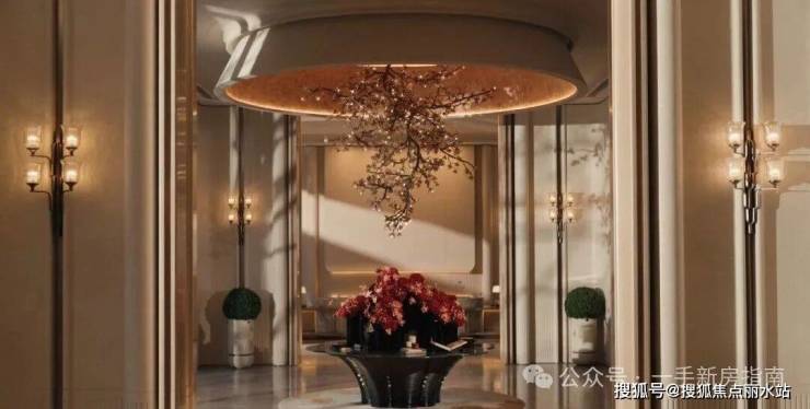 走在项目公区中,随意一瞥,都能带来美的感受,无论巨幅吊灯的勃勃生机,还是细节壁灯的典雅辉煌,再搭配不同色泽、基底暗纹的石材背景,处处彰显低调而隐奢的美感。