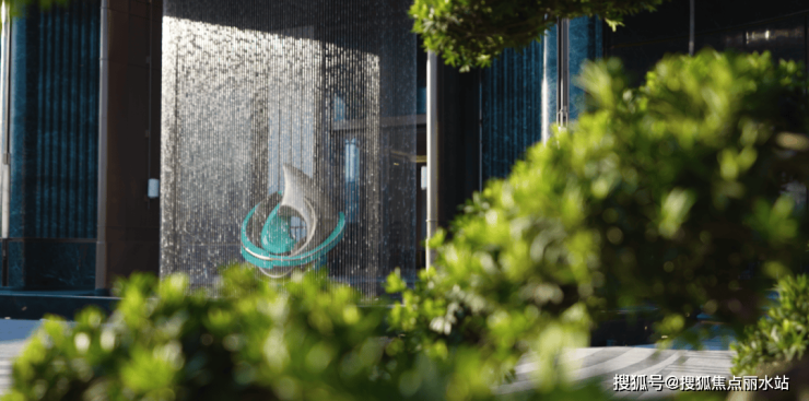 压轴的下沉式庭院,是由大师宋淑华先生亲自打造,上半部分选用进口海蓝宝石材,下面搭配玻璃幕墙,雾森升起时,山石的轮廓被晕开,与《溪山行旅图》里的远山如出一辙。