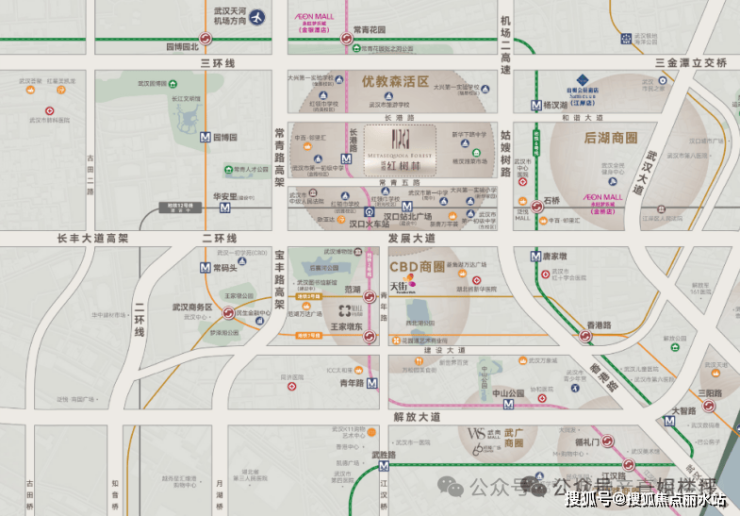 项目往西步行约500多米是2号线长港路站,通过2号线可与多条地铁换乘,还能串联起武汉超多重磅资源。