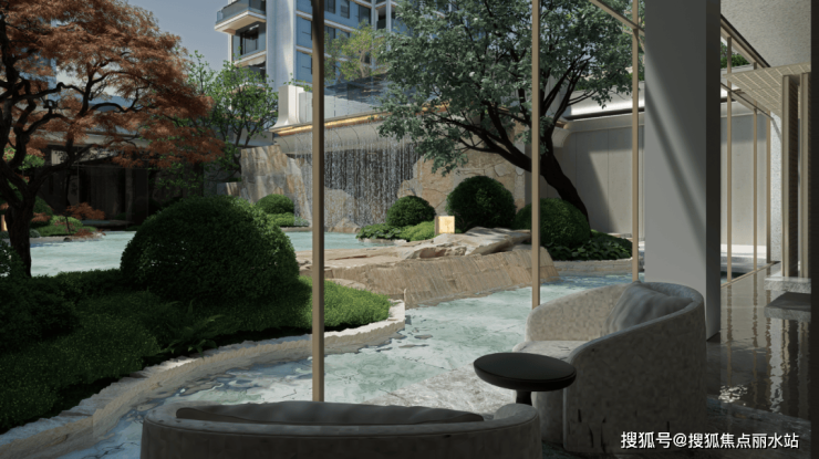 上城十号院设计了南京首个户外悬浮水池,流水、叠瀑、庭院...满满的松弛感!