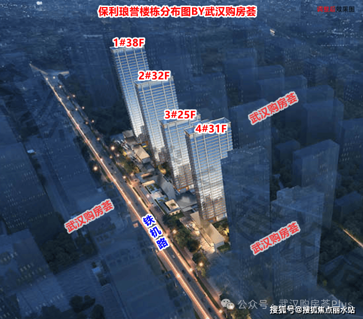 保利琅誉即保利城四期-B区北片项目,共四栋住宅楼,其中1#38F,2#32F,3#25F,4#31F,2、3、4#都有架空层。