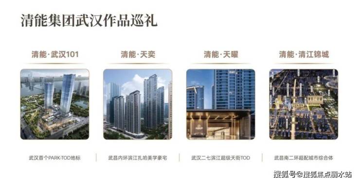 旗下代表作品亮眼:清能·武汉101(武汉唯一Park-TOD地标)、清能·天奕(武昌内环滨江扎哈美学豪宅)、清能·清江锦城(武昌南二环超配综合体)等,实力印证品质。