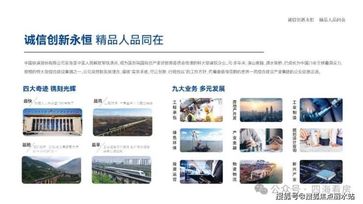 中国铁建股份有限公司前身是中国人民解放军铁道兵,现为国务院国有资产监督管理委员会管理的特大型建筑企业,70多年来,逢山凿路,遇水架桥,已成长为中国乃至全球最具实力、规模的特大型综合建设集团之一。公司坚持新发展理念,遵循“实事求是、守正创新、行稳致远”的工作方针,以服务国家经济社会发展和满足人民对美好生活的向往为发展方向,围绕政府、城市和人作文章,倾力打造“品质铁建”,发挥全产业链优势,为客户提供一站式综合服务,向着最值得信赖的世界一流综合建设产业集团的企业愿景迈进。