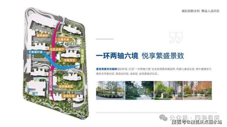 项目内部景观园林由豪宅专家贝尔高林国际执笔,匠呈全生命周期有氧社区园林。采用一环两轴六景多层次园境,景观与自然、建筑相融,绵延出一幅人性关怀的至美生活画卷。
