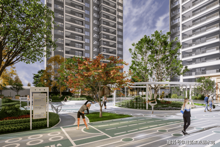 园区内设慢跑道、老年休闲区;约3.3万㎡围合园林搭配外部凯佳公园,形成“双公园”格局。绿意不仅能看,更能用。