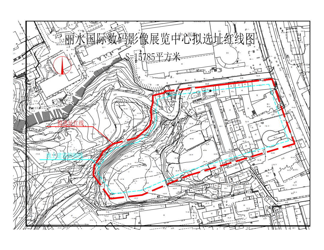 丽水国际数码影像展览中心拟选址于中心医院南侧,拟选用地面积为15785平方米(详见附图)。