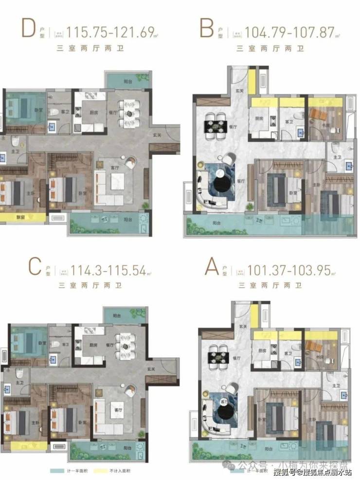 建面约101-115㎡毛坯户型。