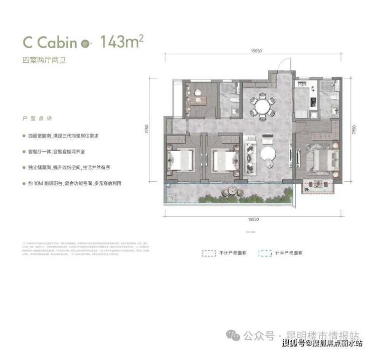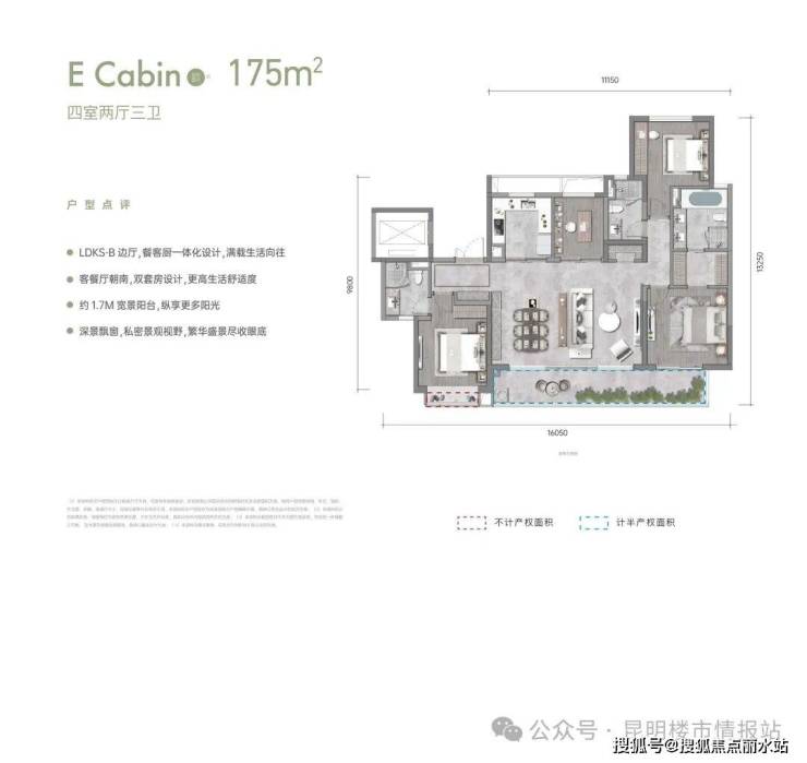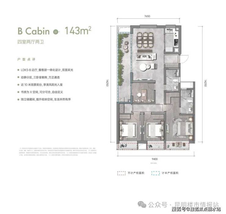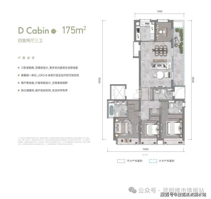 LDKS-B餐客厨一体化,空间舒阔,功能多变;大层高、大面宽、大进深阳台,生活无界;独立收纳储藏间。