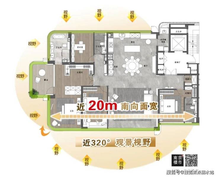 看到瑞玺建面约220㎡户型第一眼,就被近20米的南向面宽震惊到了
