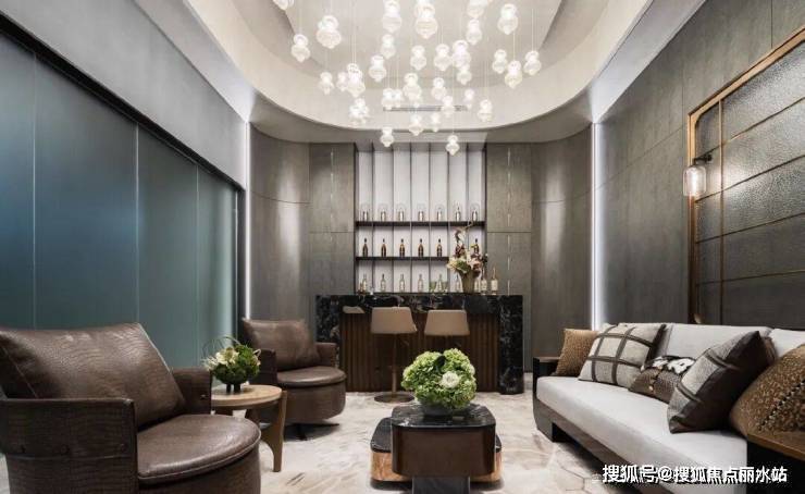 社区入口打造云隐门庭,酒店式回车落客区,合理的流线设计,实现全人车分流,酒店化灰空间,流露出矜贵的气质,将现代设计与传统隐逸精神相融合。