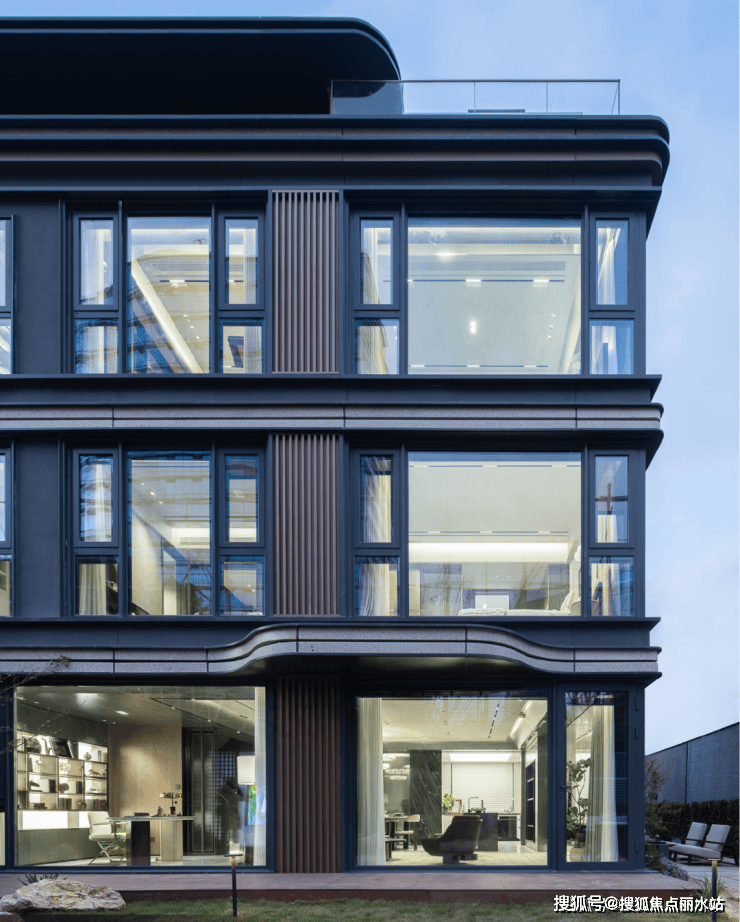 整体现代极简风格的建筑立面,以铝板搭配金属格栅,兼具实用性与美观性,呈现历久弥新的独特格调。