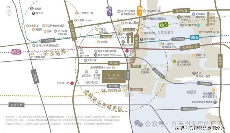 🚗立体枢纽门户五横两纵路网:金鸡湖大道、东环、娄江快速路、独墅湖大道、常台高速、南环地铁交通体系:3号线+7号线+5号线(三大地铁中心点)项目附近拥有贯穿苏州南北与东西的主要交通干道东环、南环快速路。东环高架北至苏州高铁北站/苏州站/园区站,南至吴江,连接东南西北环、可以通往苏州的各个区域;南环通达新区与独墅湖高教区,快速通达全城;常台高速距离本案直线距离约1.5KM左右路程,便捷抵达沪杭。地铁7号线东兴路地铁口便在项目北侧约150米,出门即地铁。可随机换乘1号线,2号线,3号线,4号线,快速通达苏州全城。