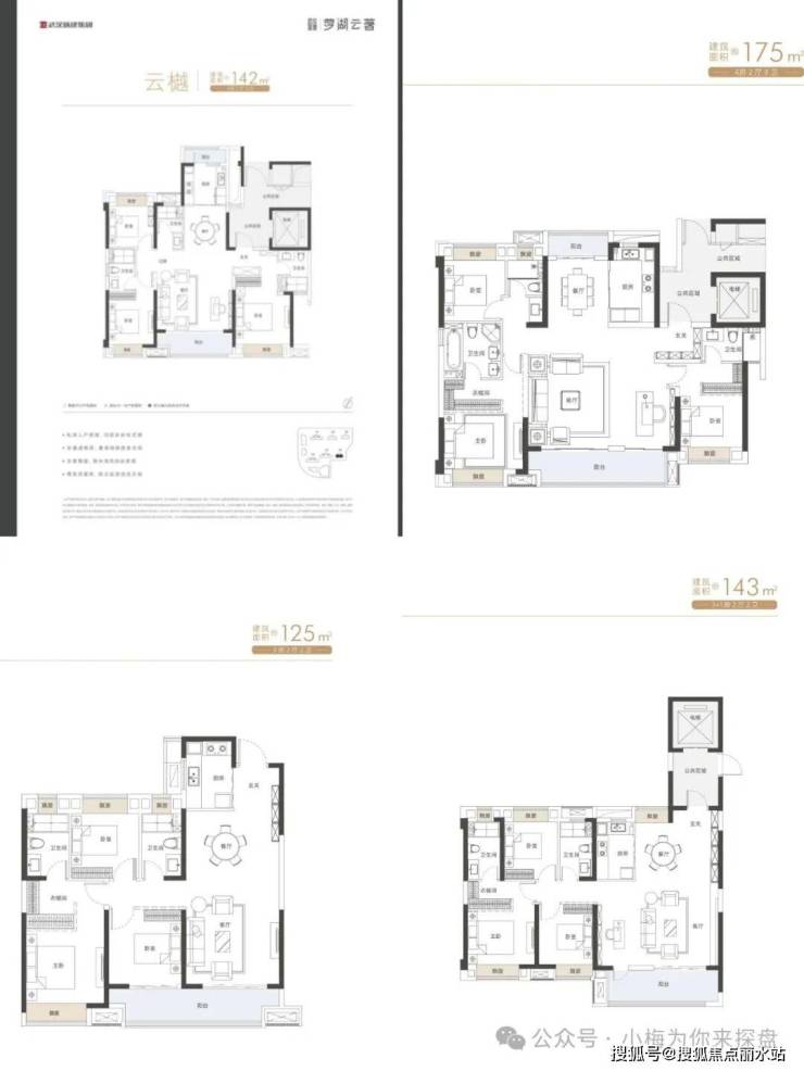 小区一共6栋房子,备案查到目前1栋已经全部卖完了,6栋去化了70%房源,(3,5栋还没卖)目前主要房源集中在2,4,6栋。6号楼共46层,3梯4户,包含建面约125-143平房源;4号楼共33层,是2梯2户的板楼,都是建面约143平房源;2号楼共24层,是2梯2户的板楼,标准层都是建面约176平房源。