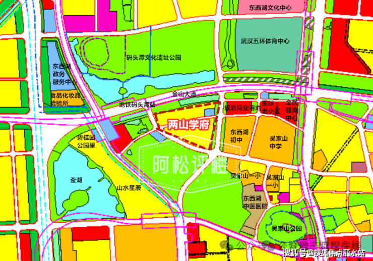 两山学府位于东西湖区金山大道与雷达山路交汇处。