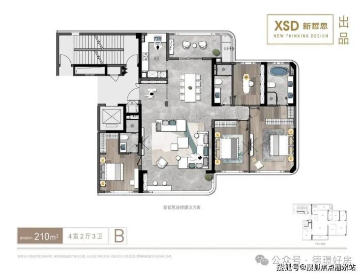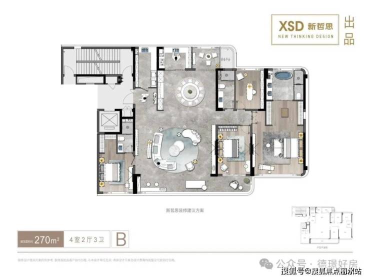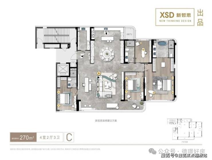 ◎豪华套房式主卧 | 约52㎡套房主卧,用空间上的雍容匹配主人身份标签,配以瞰景阳台、衣帽间、独立卫浴,诠释奢华舒适的居住体验