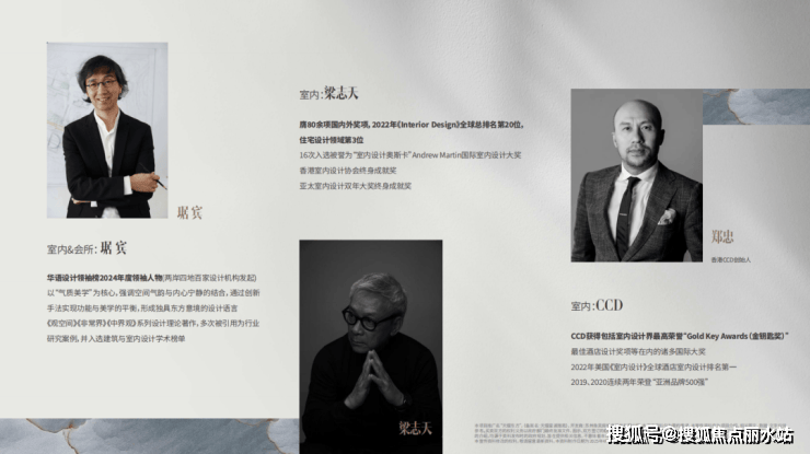 2)汇聚国际大师天团。建筑团队:水石;景观团队:观己;室内团队:梁志天、琚宾、郑忠 、CCD 等,各擅胜场,赋能品质人居。