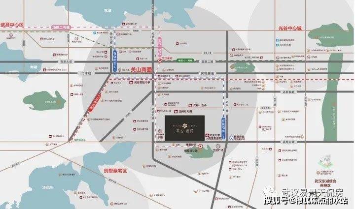 立序关山,同频世界光谷都会,平安璟园,雄踞大光谷两大极值中心圈交汇处,一面大关山,承接关山都会,一面联动光谷中心城,融合同频两大城核心资源圈。