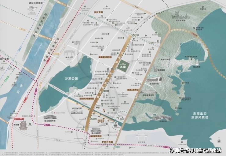 距离东湖约800米,距离沙湖约700米。东湖,比肩黄鹤楼、长江大桥,三大城市名片之一。沙湖,武汉唯一内环湖,传统富人区。双湖之心,推窗俯揽,推门融入!