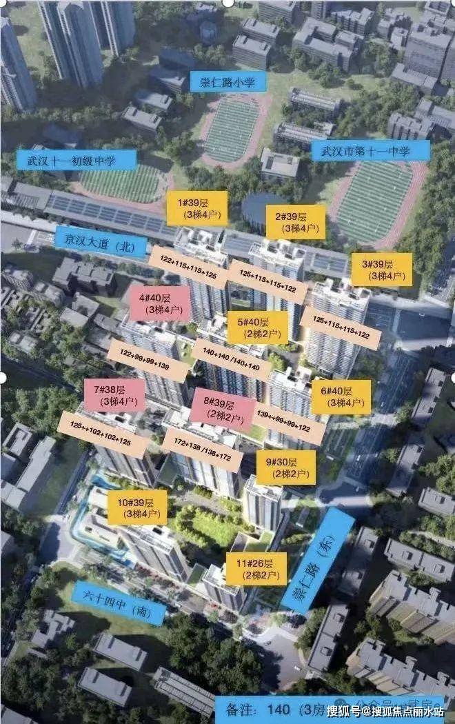 2#3#号楼,3梯4户 39层,面积:125-115-115-122,公摊26.2%,少量均价23000。