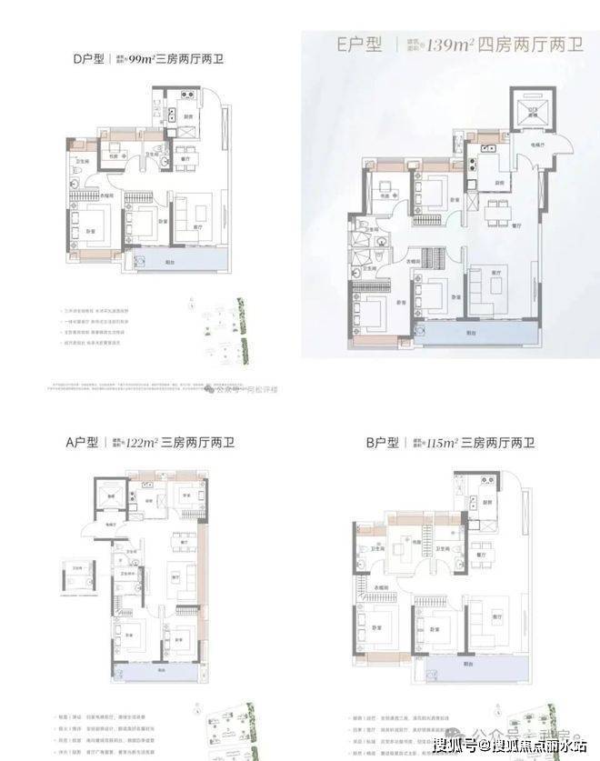 主力户型| 建面约99㎡三房、115㎡三房、122㎡三房、125㎡三房、139㎡三/四房、140㎡三/四房、172㎡四房