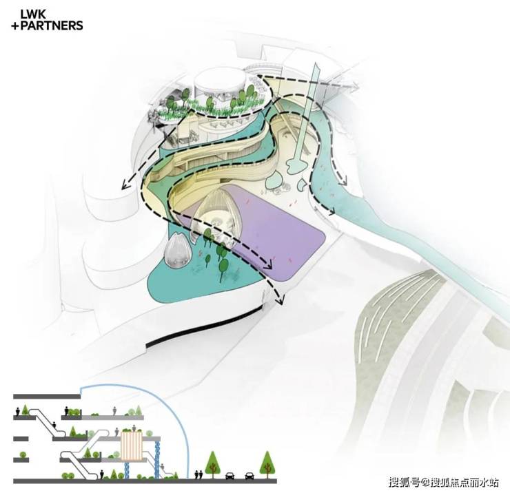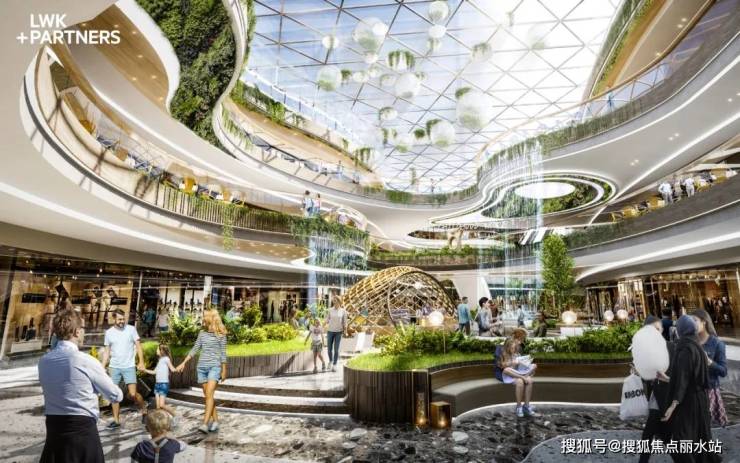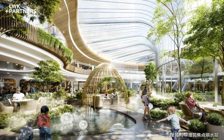 疫情让人们更关注自然、健康、微度假等绿色生活模式,商业及办公空间融合生态、鲜氧、绿色、开放等元素逐渐成为设计主流,让建筑以更开放的姿态,参与到城市生活圈的活动。由 LWK + PARTNERS 董事刘晓冬、设计董事 Panu (泰国)带领团队,共同打造的万欣城 #6/#7号地块商业及商务办公设计方案一举中标。方案以 "轻简化TOD + 城市绿肺"设计概念,引入中心公园优渥的景观资源,延续城市绿道,构建室内景观室外化的特色商业空间,打造天津首个室内生态雨林主题城市综合体。