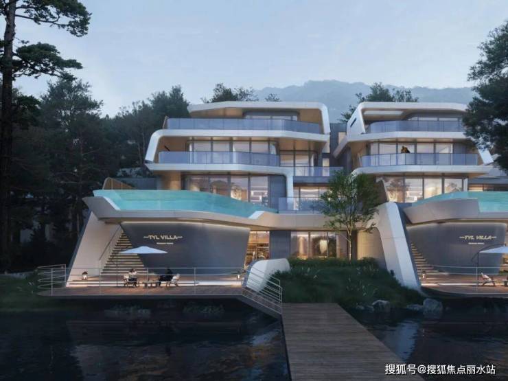 以独创游艇风格为建筑造型,整体立面采用铝板+大面积落地玻璃等,凸显建筑的现代感、通透感,三层悬浮式露台坐拥270°环幕视野,将自然景观引入室内生活,让建筑成为自然的一部分。