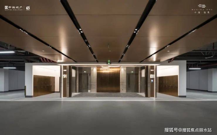 地下车库作为归家第一空间,中海·铂隽配以璀璨浪漫的星空顶,通道上还有马蹄石铺设的坡道,金属全包的墙面,甚至还有迎面而来的“景墙”。