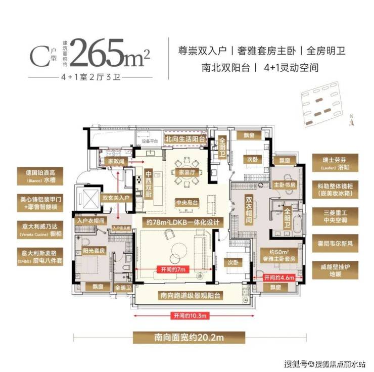 全明卫浴,全南北双阳台,全中西双厨,全系宽厅,全五开间朝南