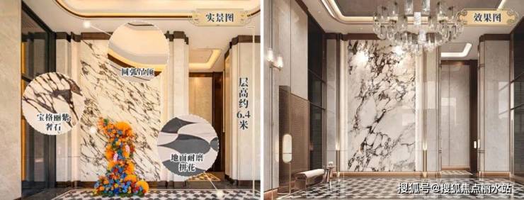 同样惊艳的还有首层挑高入户大堂,实景呈现的颜值比效果图更高。