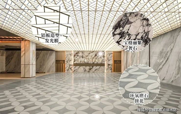 无论环氧磨石拼花、铝板造型+发光膜,还是墙面的宝格丽紫奢石,看上去尽显典雅大气,满满的高级感。