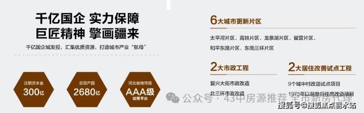 千亿国企城发投集团,立足城市更新一级开发、城市运营、产业整合等省会建设发展业务格局,是“6+2+2”城市更新发展战略的先锋队和主力军,在石家庄“拥河发展”战略中肩负使命,用事实和实景兑现城市宏伟蓝图的每一寸角落。