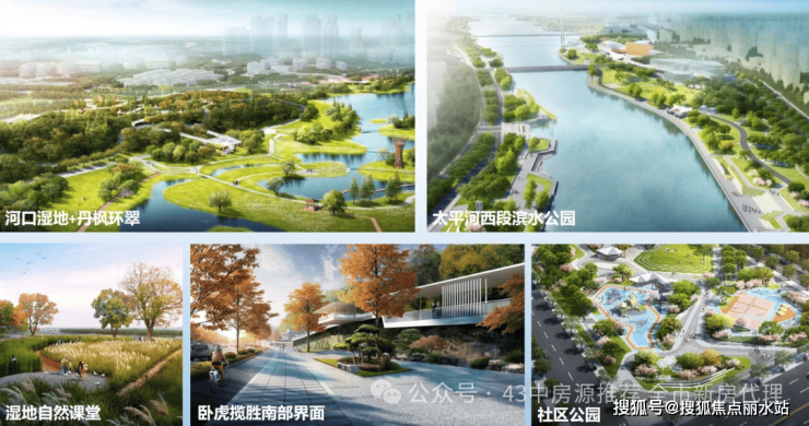 片区以“两河汇集、三山拥翠、六园环芯、十二集景”为生态构架,打造“5分钟入园、10分钟亲水、15分钟进山”的新森活模式。项目北侧邻卧虎山公园与太平河生态绿廊,西侧为社区公园,构建家在风景里,人在画中游的诗意生活。