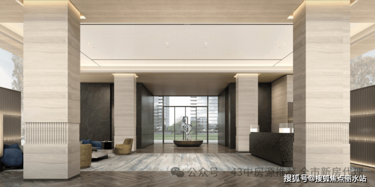 瑞璟春和主出入口处实现全人车分流,作为城市封面生活代言,瑞璟春和溯源传统精髓,糅合现代人性化需求,将自然美学与实用功能充分融合,通过酒店式大堂—风景连廊—宅间庭院聚落/全龄生活架空层—首层入户大堂—地下精装入户大堂五重归家礼序,营造尊崇归家感受。入户大堂(效果图)