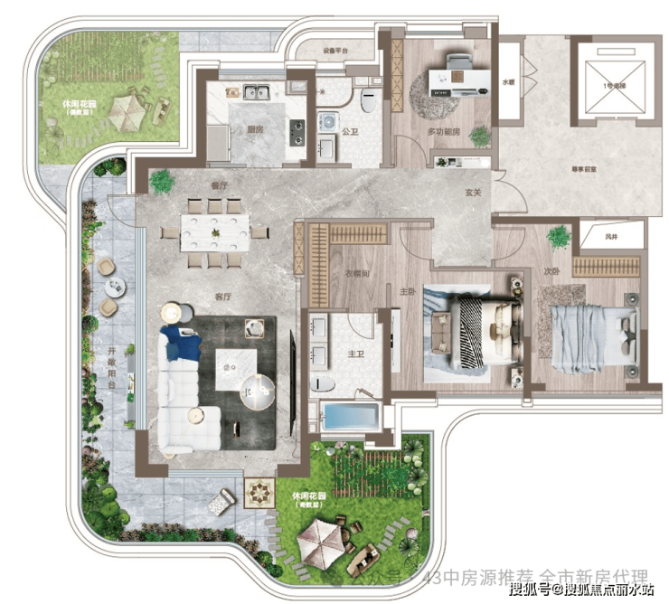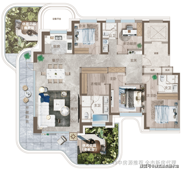 115-190㎡一线河景观邸,6.2米挑高花园阳台,270°立体环绕庭院,让山河回归府邸,让生活回归自然。空间采用创新的LDKB-Y五维一体设计即客、餐、厨、阳台、庭院融为一体,打造超尺度家庭社交场域,形成无界交流和会客空间,敬献立体花园住宅灯塔级作品。