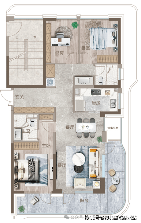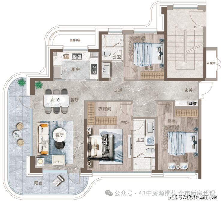 B户型·知亭,建筑面积125㎡,三室两厅两卫。